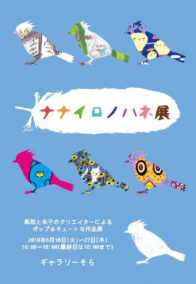 こんにちは。 ようやくネットを使える環境が整いました。 さて、5月18日(火)から27日(木)まで、 ギャラリーそら企画展「ナナイロノハネ展」が開かれます。 鳥取と米子のクリエイター6人が出展します。 私も参加します。 それぞれの作品に作家の個性があふれる展示になるのでは ないかと、楽しみです。 ただ、自分の絵が間に合うか... 全力でがんばります。 お近くを通られる際はぜひおたち寄りください。 会期:2010年5月17日(火)~27日(木) 会場:ギャラリーそら(鳥取市栄町)