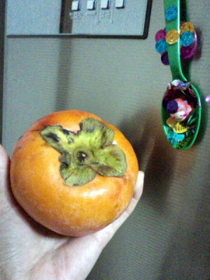 帰宅後無性にお腹が減り、 どうにもこうにも空腹を我慢できないので なんだか立派な風貌の柿があったので 急いで食べました。 ガリガリに硬い柿でした。 私は干し柿から腐りかけているんじゃないかと 思わんばかりのやわらかくなった柿まで あらゆるジャンルの柿が好きなので 硬い柿もとてもおいしかった。