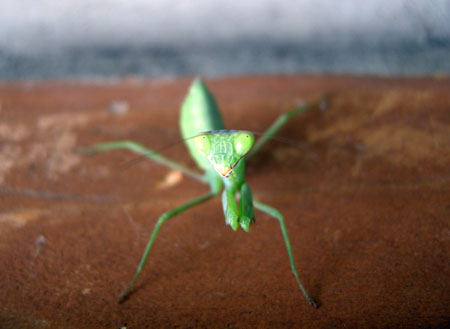 こちらをにらんでいる カマキリに出会った。 ファイティングポーズで、 左右にゆらついてました。