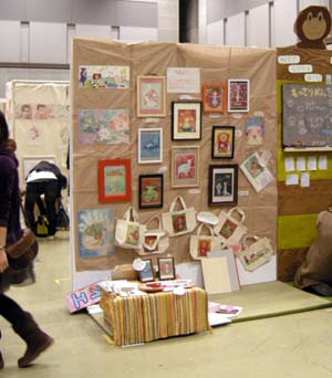 デザインフェスタ(8、9日)初参戦。 ん~どきどき フェス1日目はまず準備からはじまった。 早めに行ったつもりだったんだけど、 開場1時間前についてしまった。 慌てて展示しはじめるが、 画鋲が…、ネジが…パネルになかなかささらない! 痛い、手が痛い、でもネジをねじ込むしかない! 私の展示は、因州和紙にアクリル絵の具で描いた13点の絵を 飾って、似顔絵コーナーを設け、ポストカードなどを販売する というものでした。 こんな感じに展示しました。 んー、ゴチャついてる割には、インパクトを感じないなー [...]