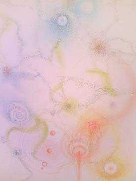 本日もN浦さんのところへ行き 部屋を貸してもらいました。 今日は心を無にしてひたすら手の動きたい 方向に向かって点々を描いてみました。 はりきってしまい、B2サイズの用紙に描いていましたが 紙が大きいのに描いているのは点々なので 点を打っても、打っても紙がなかなかうまらない。 途中点を打ちながら意識を失っている(うたた寝) 時間があったようです。 途中両手で点を打ったり・・・ なんとかこのような形に行き着きました。