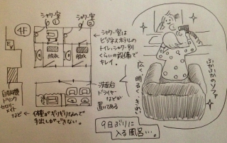 9日目にして、初めて風呂に入りました。シャワールームも化粧室もキレイ快適で、リフレッシュできました。 入院3日目までは、風呂に入られないことが苦痛に感じていましたが、それ以降は悟りが開けたのか、別にそんなことは取るに足らないことである、と。 入浴は身体のために行うものではなく、精神のためではないかと、このたび気づきました。皮脂の分量は、自動的に体が調節するんだと思います。あぁ、こりゃーそんなに出さなくていいよねといった感じに。 風呂に鏡がついてるんですが、私は知らないうちに、笑みをこぼしておりました。風呂で心が満たされている。 ローマ人も、そう思って風呂を作ったんじゃないでしょうか。