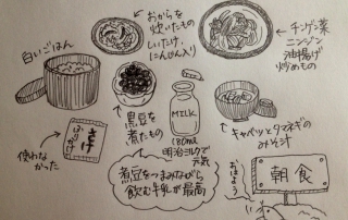 太巻きを食べられるこの日が、ここ1週間、待ち遠しかった。 今年の太巻きの具材は、菜の花、干し椎茸、かんぴょう、ちくわ、きゅうり、 海苔の佃煮、だし巻き卵、豆もやしのナムル、田作りを前日から準備するという 気合いの入れようです。7本出来ました。明日の弁当に1本持って行こう! 鬼のお面も作ってみました。 荒くれ者の鬼だったが、300年前に、人間にぶつけられた豆が 額にめり込んで以来、すっかり大人しくなってしまった。 ただし、鼻に実の父「鼻あたまのおやじ」が住んでおり、花粉症の時期だけ、 影響されて暴れてしまうことがある。という設定のお面です。 口元にカバーが無いので、とても息がしやすい仕様となっております。 前日より、吸水、乾燥させ煎った、ちょっぴりソフトぎみな豆で、 豆まきをし、年の数だけ食べ、 〆にホワイトモンスター(シフォンケーキに、たっぷりの生クリームを載せた、 [...]