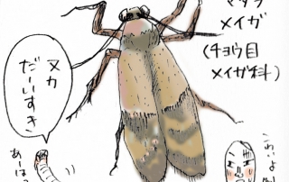 蛾が! 最近、家の中でやたらとひらひらひらひらしているなと思っていました。 「なんなんだ、こんなにたかって!」 「ナイス蚊っち」というテニスラケットに似た、スイッチひとつで、 金属ネットの電圧が上がり、そこに接触した虫が「バチッ」となってしまう・・・ というラケットで取っても取っても、しばらくするとまた、わいわい騒いでいる。 なぜなんだ、なぜこんなにいるんだ。 ラケットを結構振った。部活を思い出すなぁ。 捜索するわけでもなかったが、徐にあまり開けていない台所の戸棚を開けた瞬間、 何やら、白いクモの巣のようなものがからまり、そこから、ひらひらひらひら・・・ エイリアンの巣を発見した! 発生源は、米ぬかでした。 図鑑で調べたところ、ノシマダラメイガという蛾でした。 家の中の害虫とされているようで、米ぬかが幼虫のえさになるそうです。 [...]