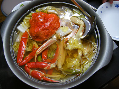 なんとカニをおすそわけいただき、 カニ鍋フェスティバルを催すことができました。 おすそわけって、すそどころか、ど真ん中です。 白菜(いただきました)とだいこんとの相性抜群で、 勢いあまり、口内を火傷。