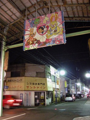 川端通りアーケード内に、 モザイクアートが展示されています。 これは「トリデコ!」と題し、鳥取大学地域学部地域文化学科2年の 学生のみなさんが、鳥取の商店街を元気にしようと企画したものです。 12月4日、5日にイベントを開き、通りすがりの人に色とりどりの 因州和紙を貼ってもらい、3m×3mの巨大作品を制作。 その完成作品が展示されています。 とてもありがたいことに、私は下絵のデザインを考えさせてもらいました。 どのように展示してあるのかワクワクしながら観に行ったところ、 屋根からこんな風に吊られていたので興奮しました。 展示は1月21日まで行われる予定で、その後、若桜街道商店街でも 展示されるということです。