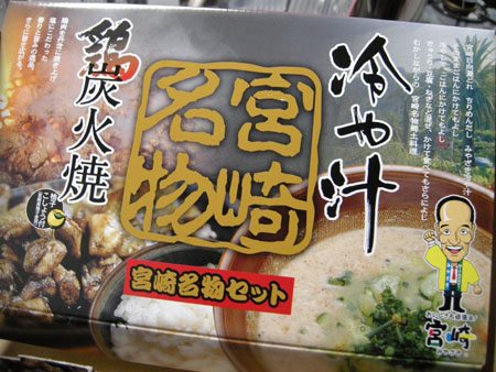 冷や汁というものを食べました。 食べましたというか、飲みましたという感じです。 宮崎へ旅行に行った方からおみやげで、 冷や汁と鶏の炭火焼セットをもらいました。 宮崎名物セットです。 炭火焼の鶏肉は炭の焦げた味が程よくおいしかったです。 炭の中を肉が転がった感じがよく出ていました。 同封の「冷や汁」ってもんは食べたことがありませんでした。 え、ごはんにかけるものだったんですか? 食べ方をみたら、液体に豆腐とキュウリの輪切りを入れて、 混ぜて、ごはんにかけて食べてね。 ということでした。 説明の通りの調理の結果、このような形に仕上がりました。 [...]