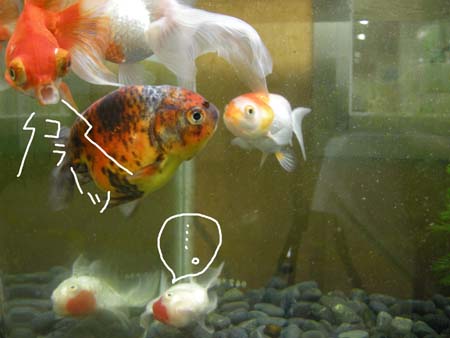 おもむろに 市役所へいったら、 ゴロリとした金魚が水槽でドンブラ泳いでいました。 「コラー、勝手に写真とるなー」 って感じですかね。説教金魚。 ・・・下のかたは寝ているということにしておきます。