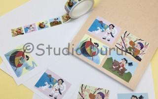「おおきな ふくろを かたに かけ〜♪」 「まさかり かついだ きんたろう〜♪」 代表曲「大黒さま」「金太郎」「一寸法師」「花咲じじい」など、生涯で500曲以上作曲! 岩美町出身の作曲家、田村虎蔵氏の生誕150周年を記念して、わらべ館さんがオリジナルグッズを制作されました。メモ帳とマスキングテープで、そのイラストを描かせていただきました。 メモ帳(60枚つづり/A6版)200円、マスキングテープ(15mm×5m)300円でわらべ館さんの受付で販売中です! わらべ館さんオリジナルグッズのページ→https://warabe.or.jp/warabekan-original-goods/