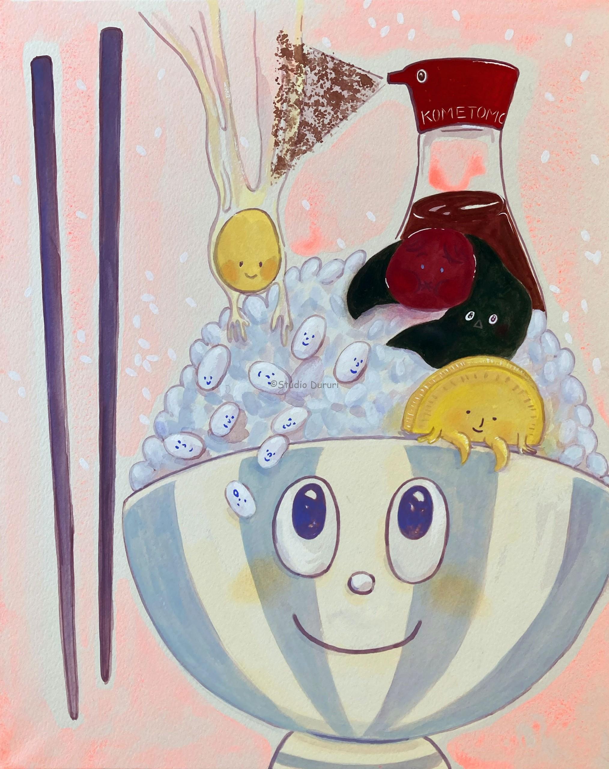 たまごかけごはん、黄色いたくわん、のり、梅干し・・・たくさんいる、米の友だち。